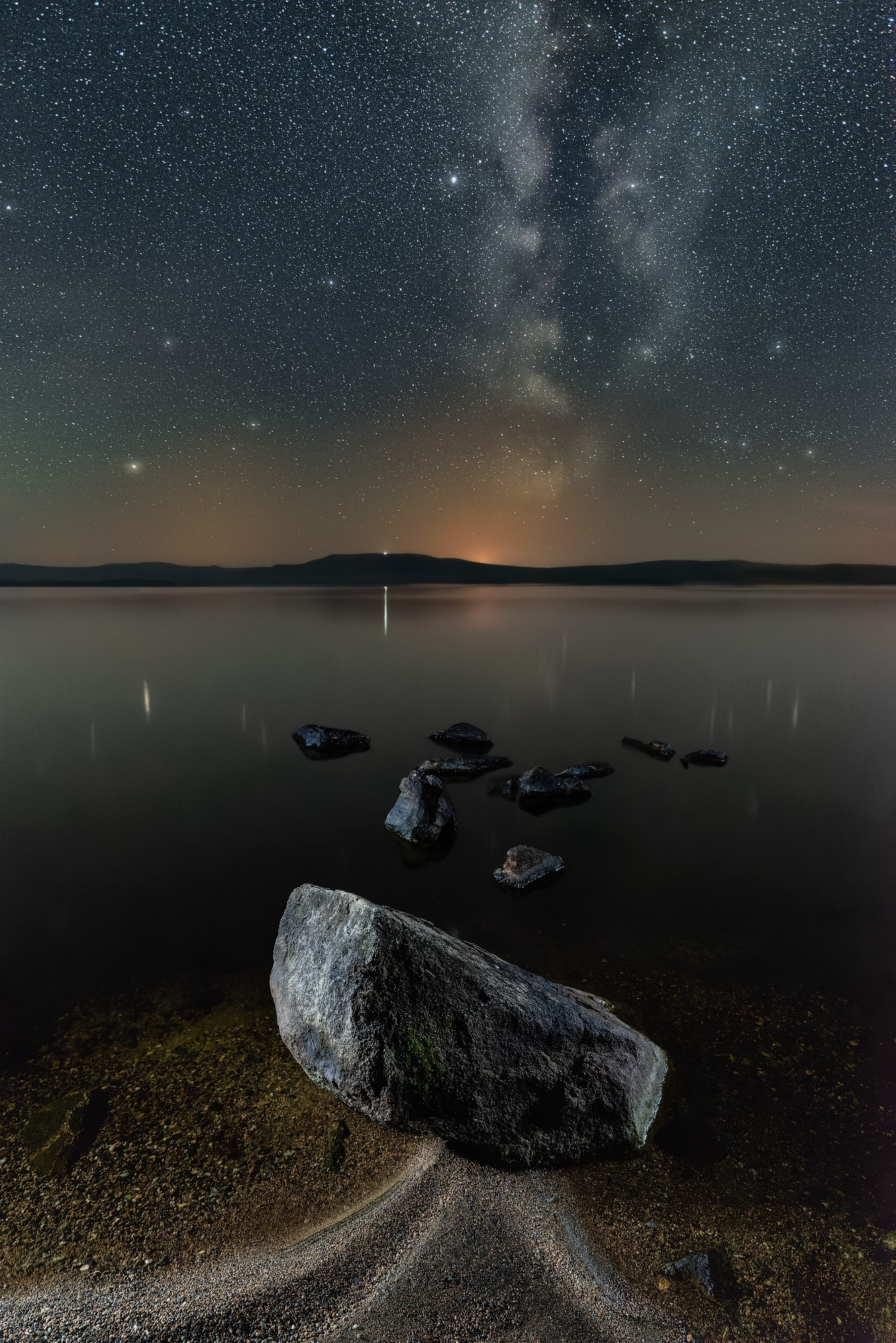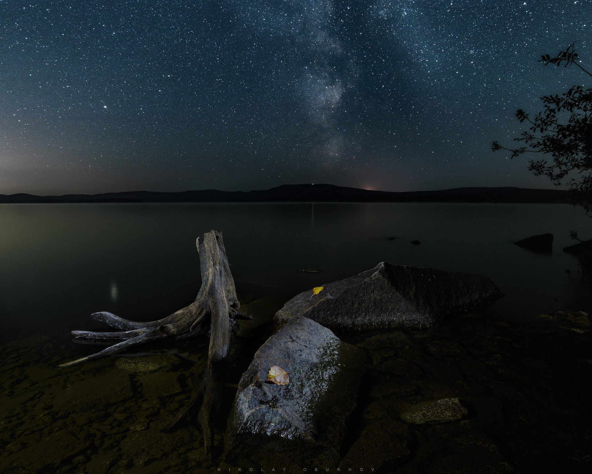 Передний план: 14 mm, ISO 100, f/11, 15s, 7 кадров с подсветкой фонариком.