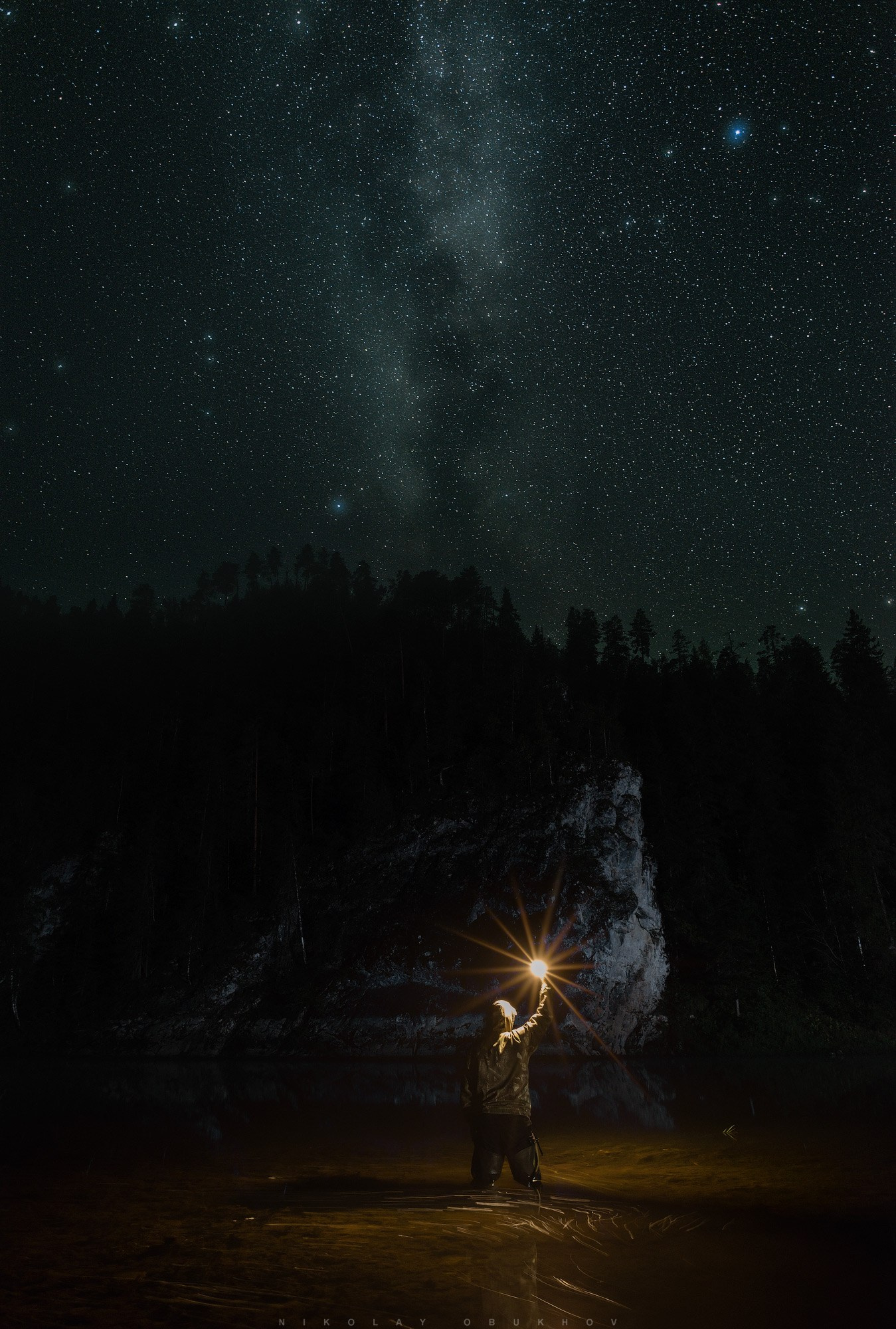 кадров гребель с подсветкой фонариком. При обработке взял небо из первых кадров