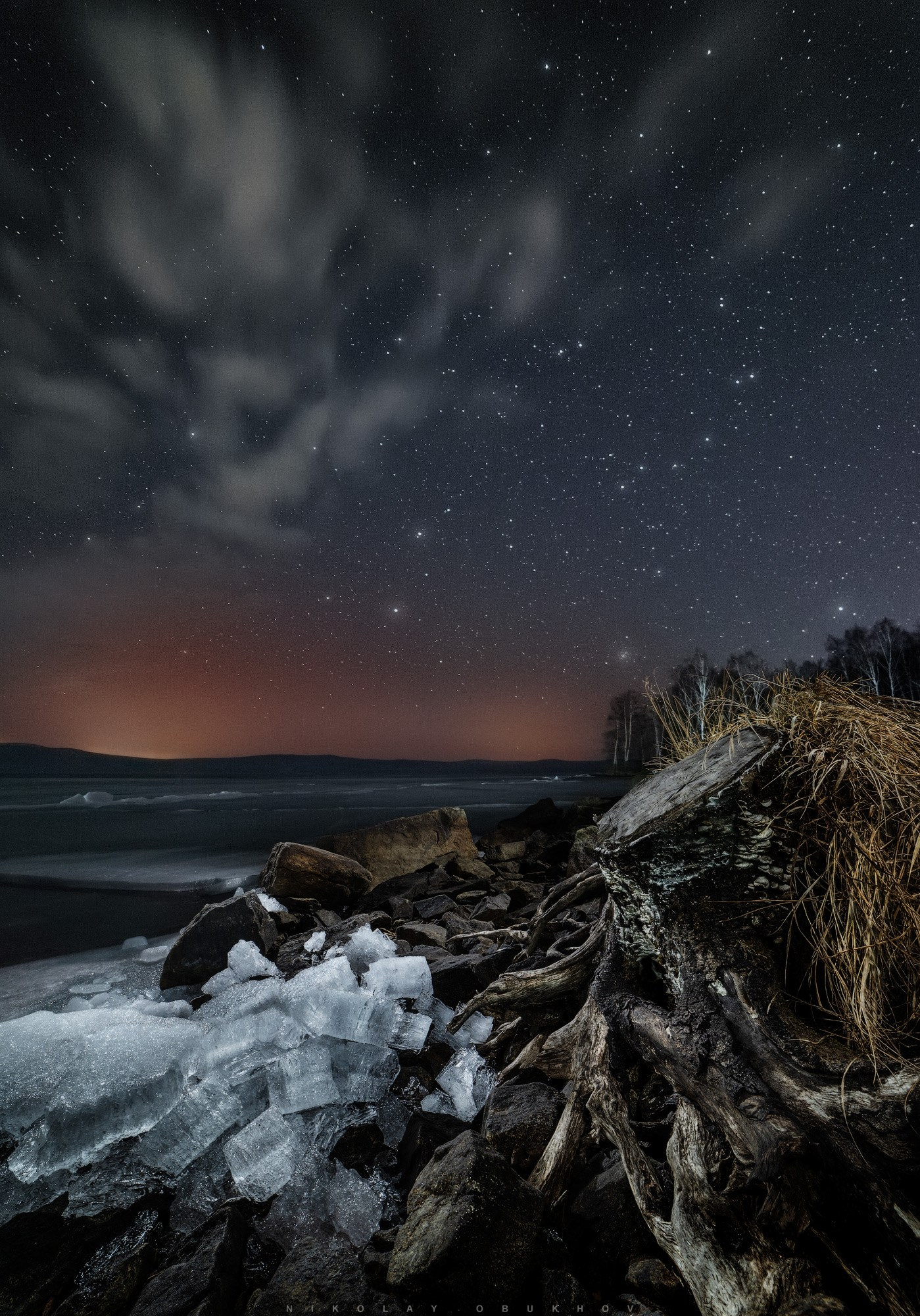 Передний/средний планы: 16 mm, ISO 3200, f/2.8, 90s, 2 кадра.