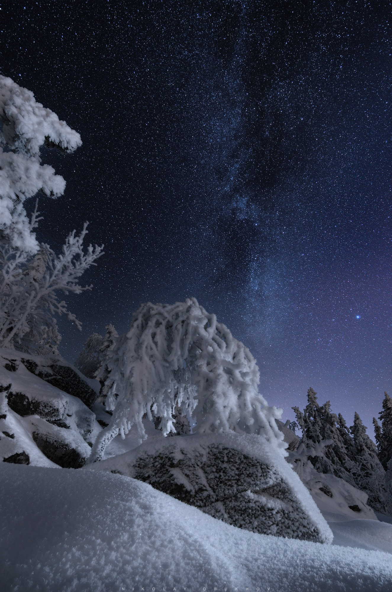Фото 2-06. Фотосъемка зимнего ночного пейзажа в горах.