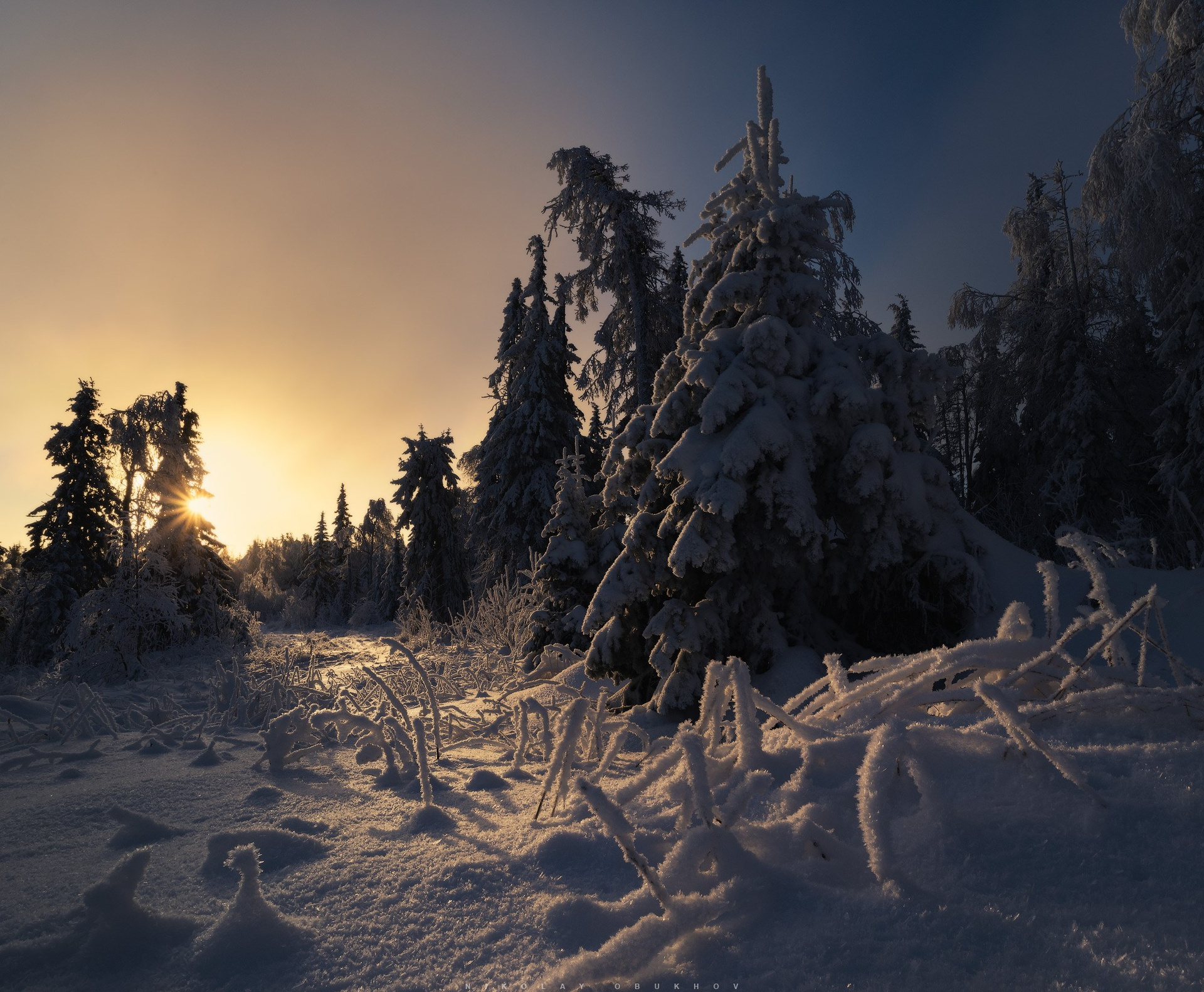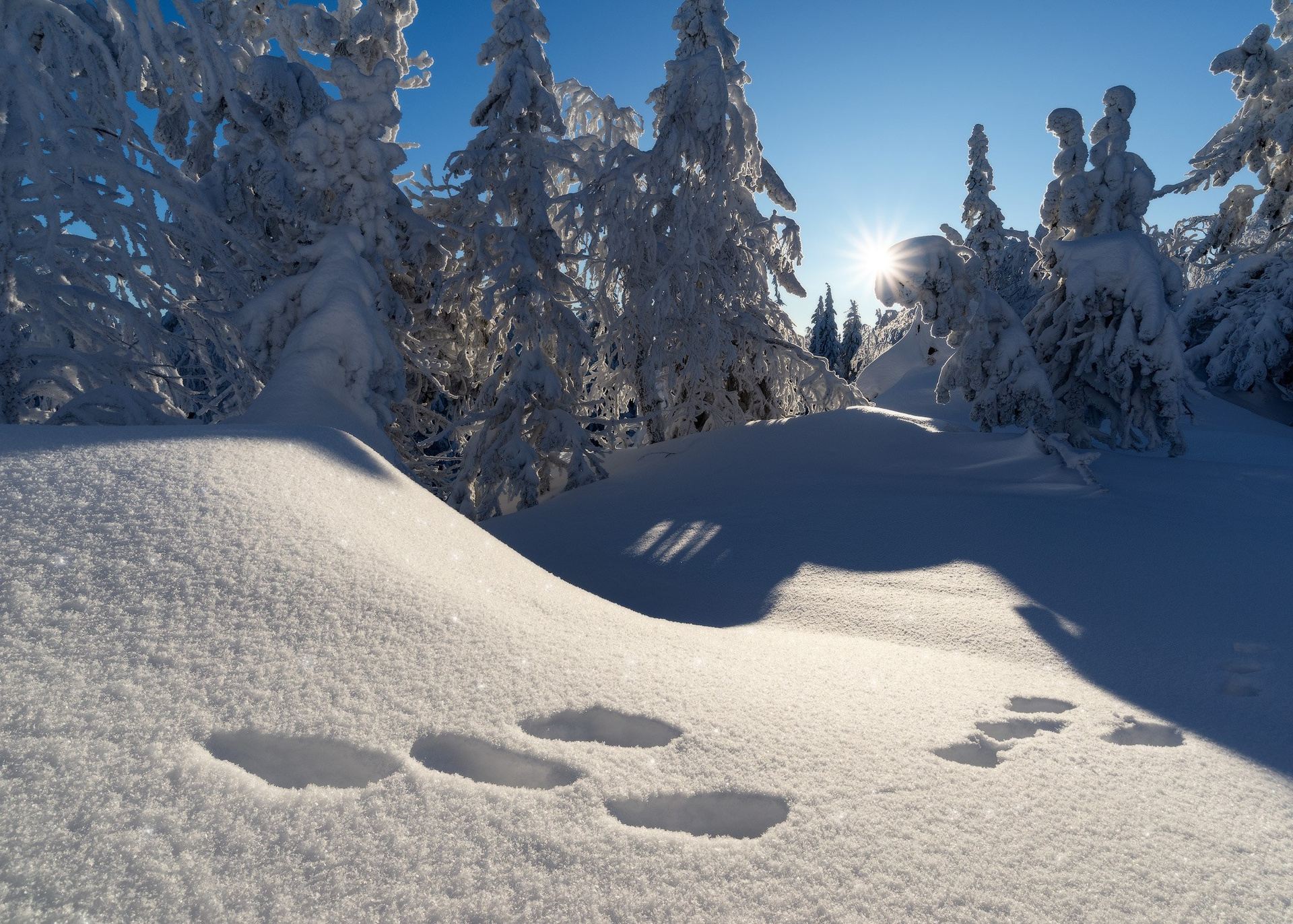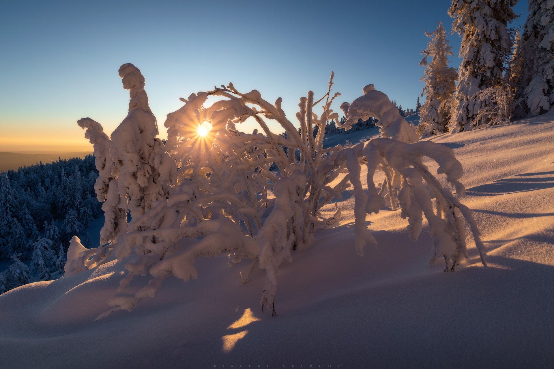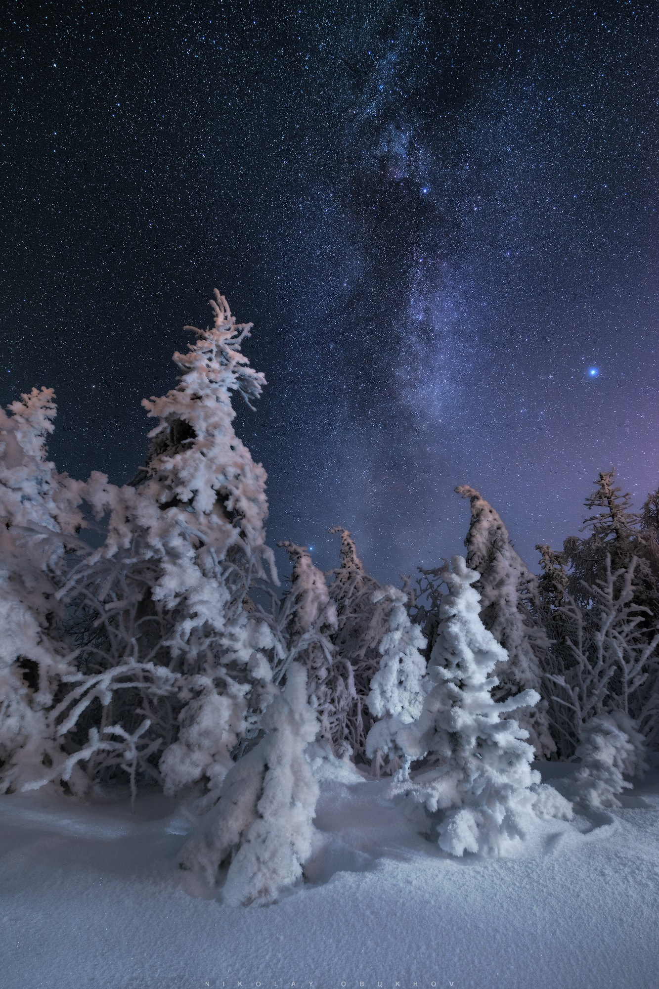 Иногда в ночном небе появляются яркие звёздные россыпи, и тогда пейзаж превращается в настоящую картину. Снег отражает небесный свет, зимний лес под звездами приобретает мягкие голубоватые оттенки, а мороз усиливает ощущение свежести. Фотографы отмечают, что ночные кадры горы Белая наполнены особой атмосферой: в них сочетаются тишина, холод и торжественная красота. Именно здесь ночная съёмка зимнего леса с елями и сугробами становится настоящим вдохновением для творческих людей.